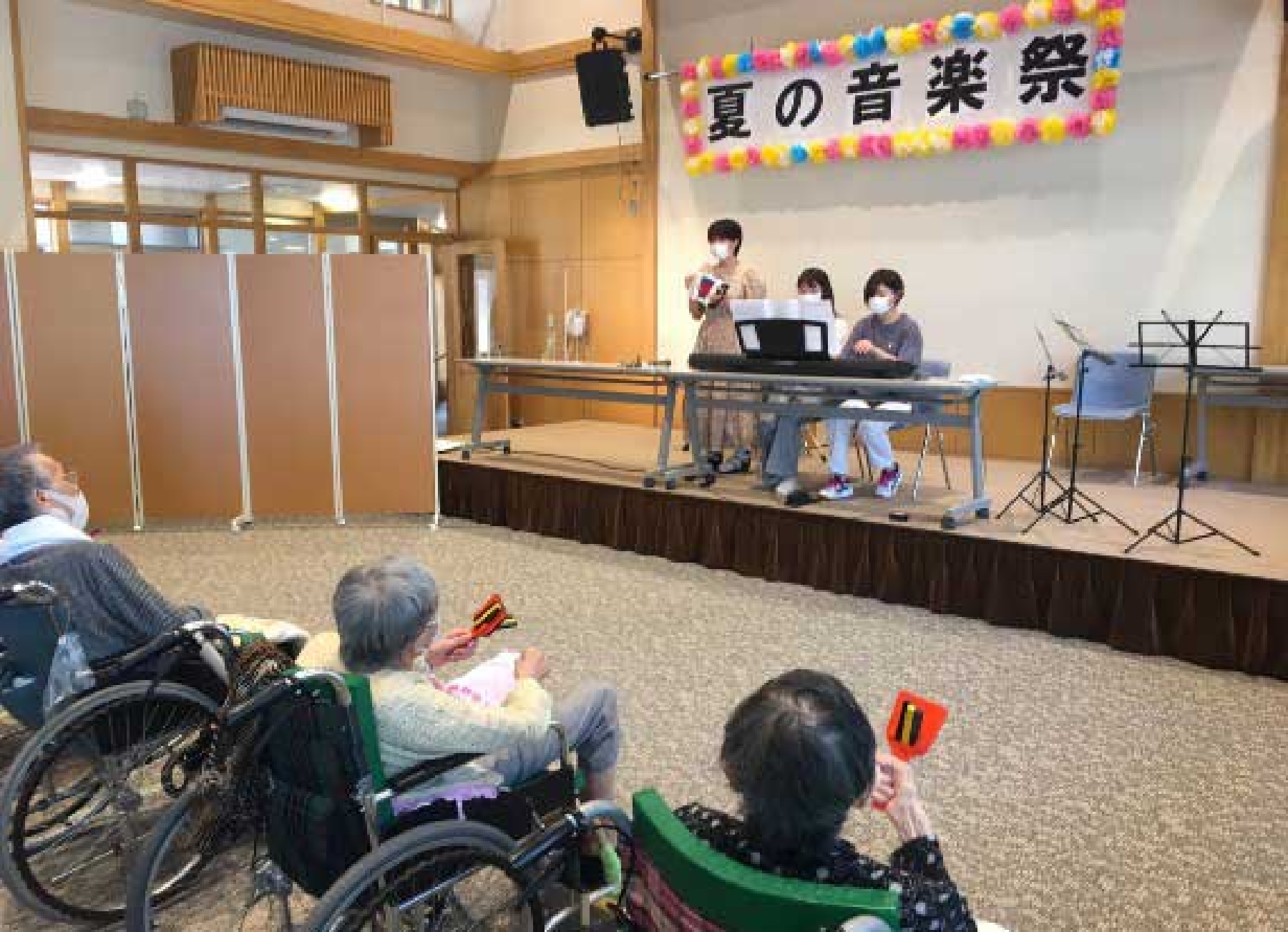 施設からは、(今回は60名以上の会場でしたが)後期からは小規模なユニットでも活動してもらいたいと要望をいただいていますので、工夫と配慮を重ねながら少しずつ音楽活動を再開していきたいと考えています。